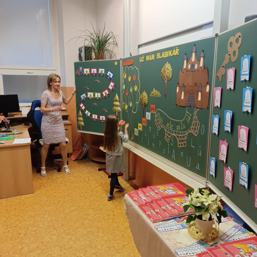 Žáci 1. A a 1. B si k této příležitosti připravili výjimečnou vyučovací hodinu. Pozvali do školy své rodiče, pana ředitele a společně se vydali na dobrodružnou cestu na hrad Slabikářov, kde děti předvedly, co všechno se již stihly naučit.
